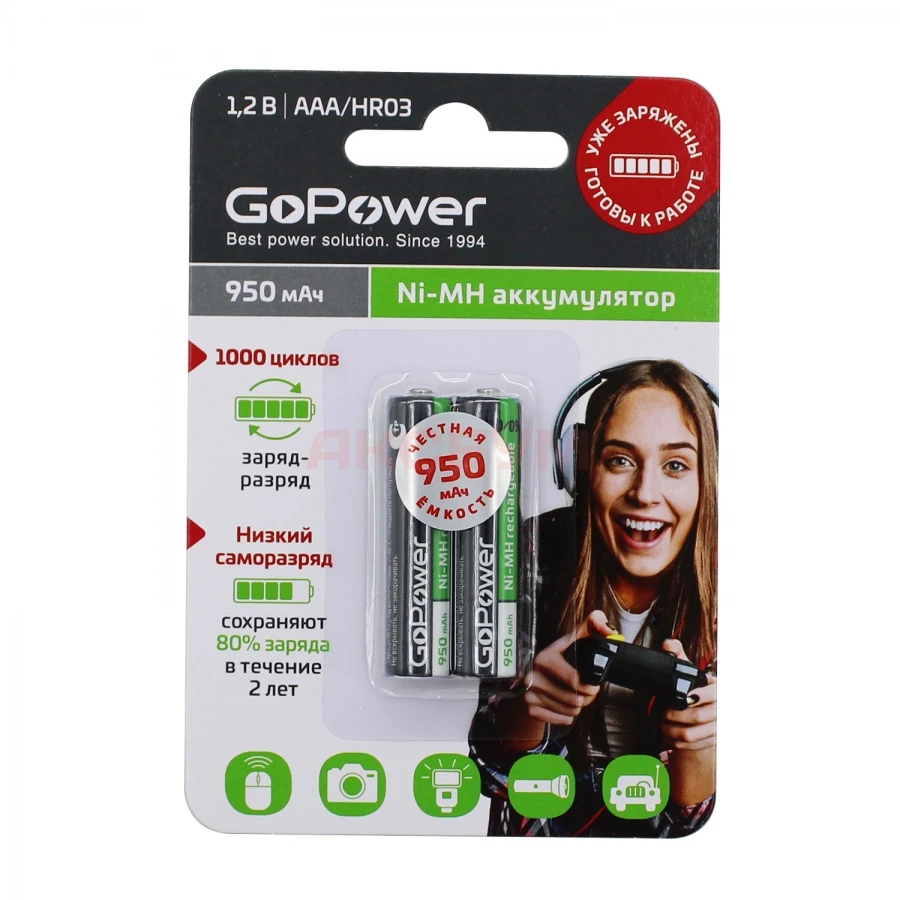 Аккумулятор AAA GoPower 950 mAh (2 шт в блистере)